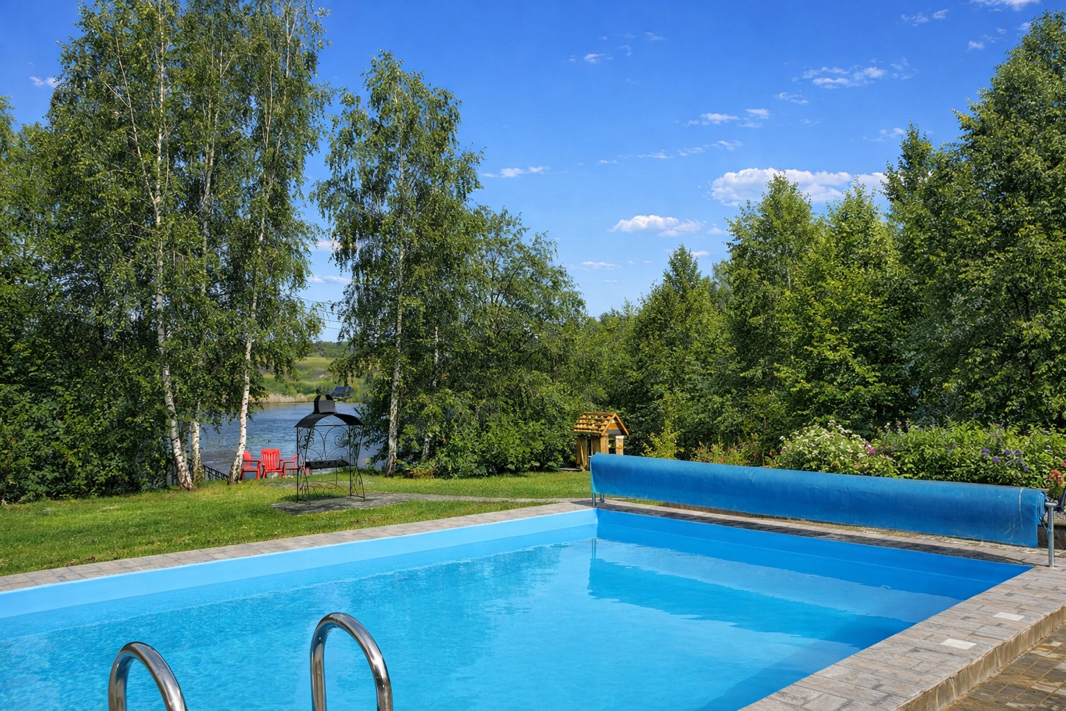Аренда коттеджа с баней и бассейном у озера